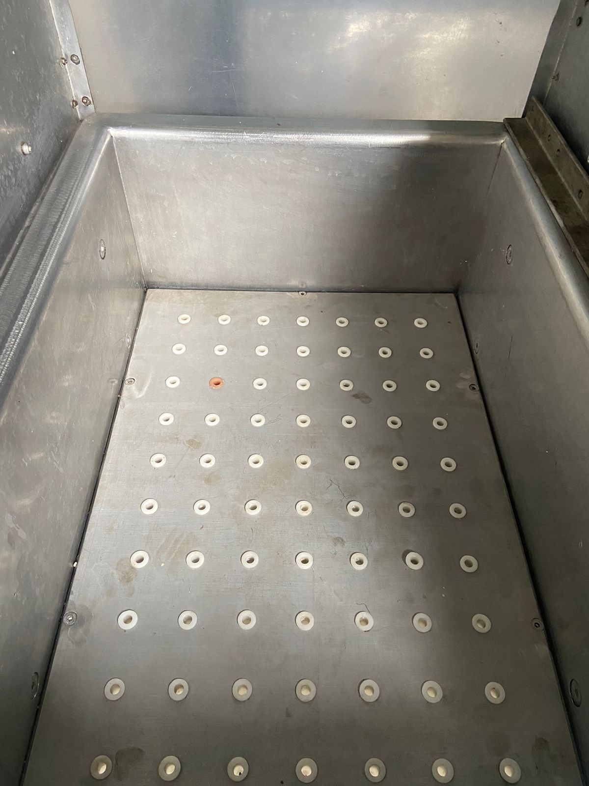 Possui revestimento em chapa de Inox 304 e os cantos arredondados, para facilitar a higienizarão. Com estrutura de dupla travamento;